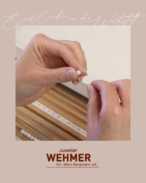Hier wird gerade eine Perlenkette neu aufgezogen. Der Verschluss war defekt, doch mit ein wenig Geduld und Präzision bekommt sie ihr Funkeln zurück.